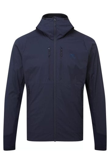 Hybridní bunda s kapucí, ideální jako střední vrstva s vysokou..