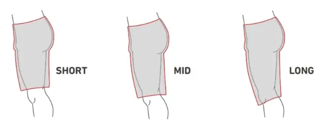 různé střihy podle druhu aktivity. Nabídka kraťas nabízí tři
